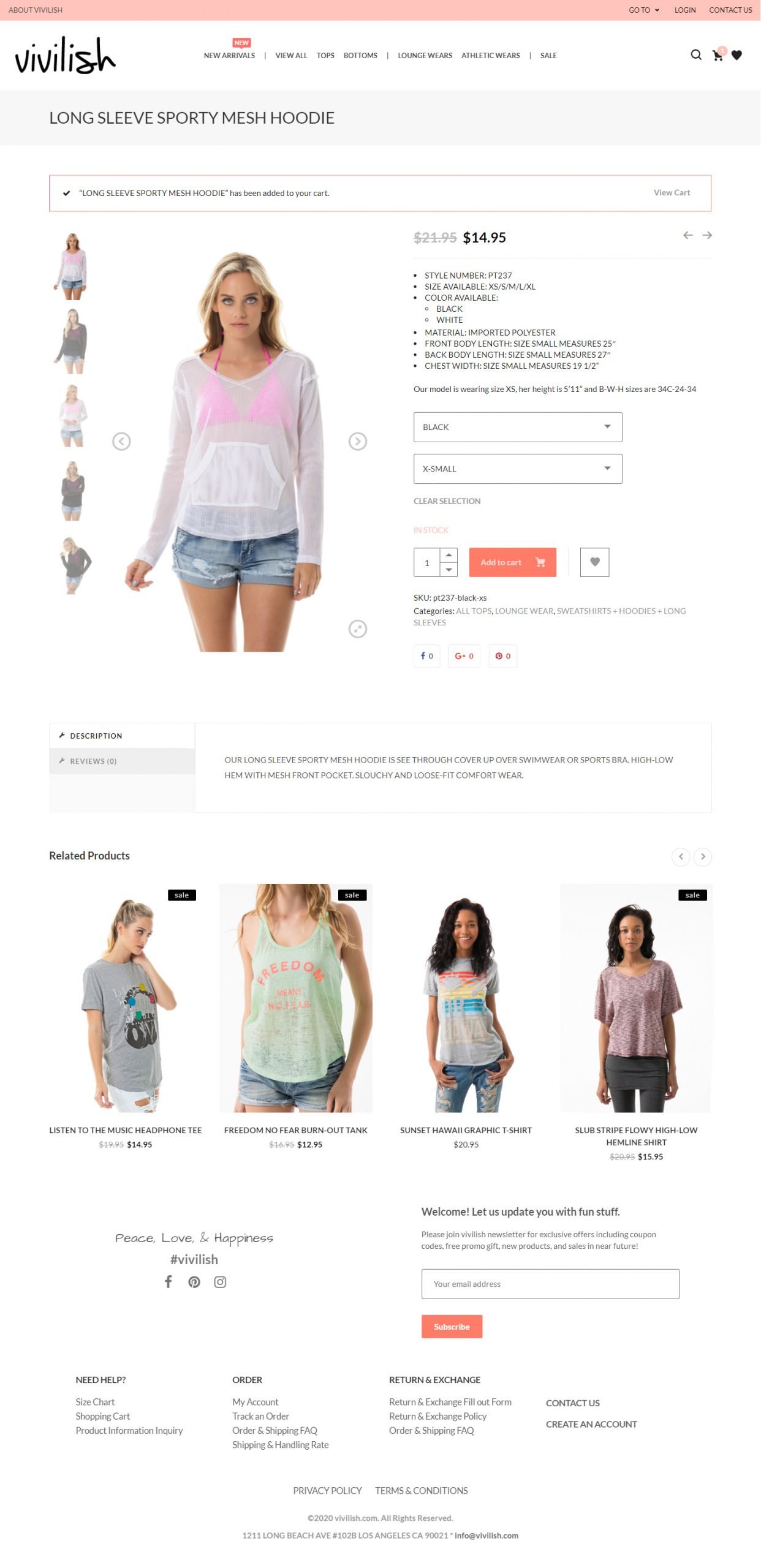 여성의류 전문 브랜드 Vivilish를 위해 개발된 이커머스 사이트로 많은 상품리스팅과 상품 순환주기가 매우 빠른 클라이언트에 상황에 맞게 기획 및 제작